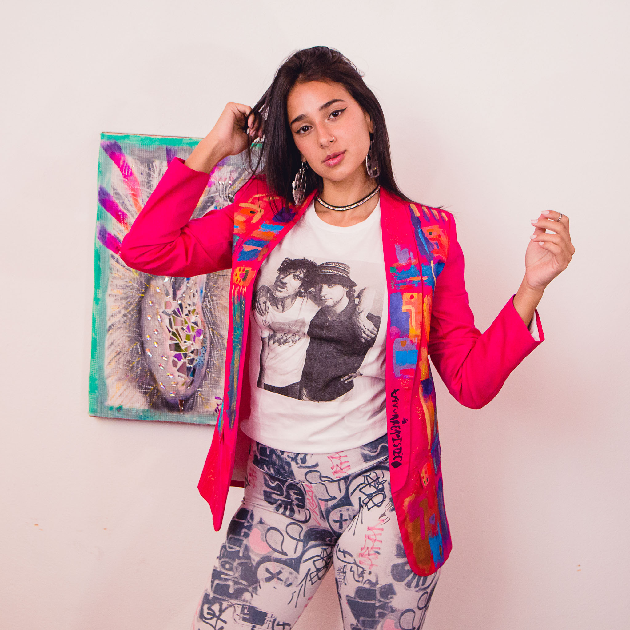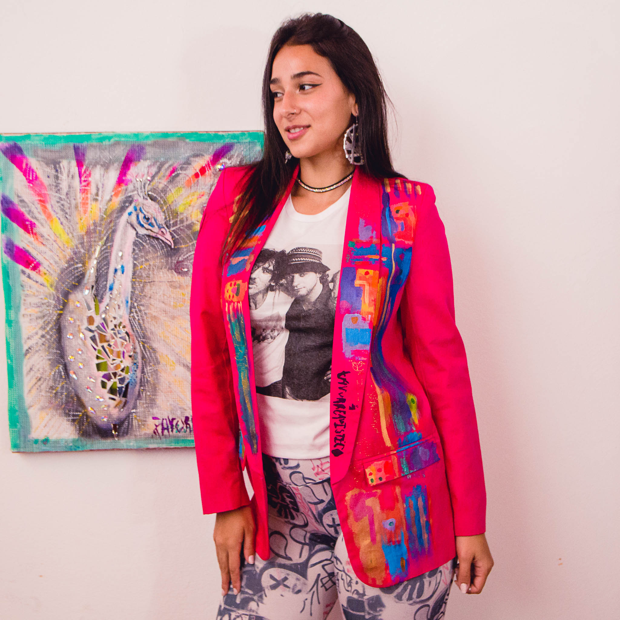 Blazer fucsia diseño pincelado.