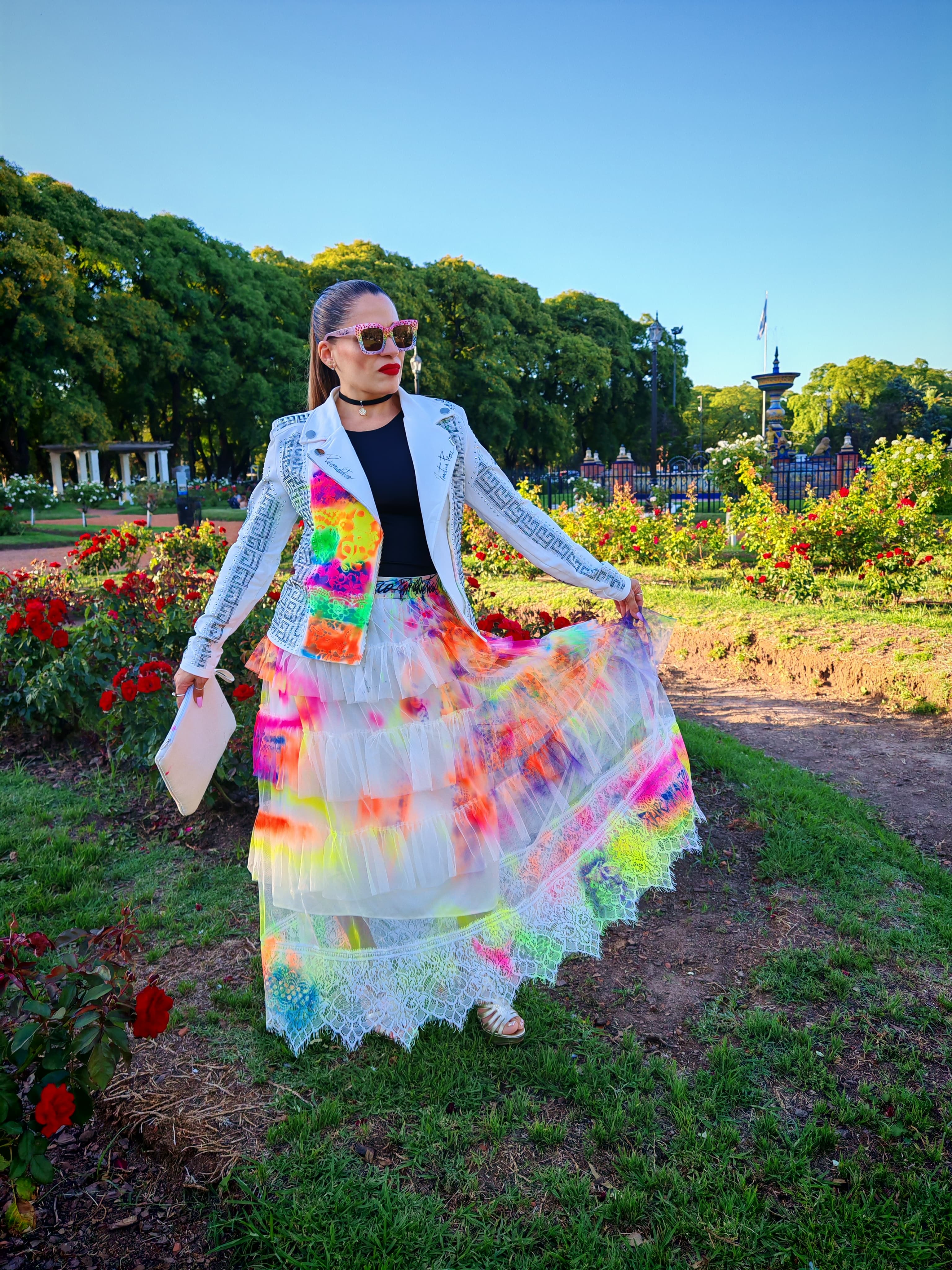 Pollera tull grafitti neón